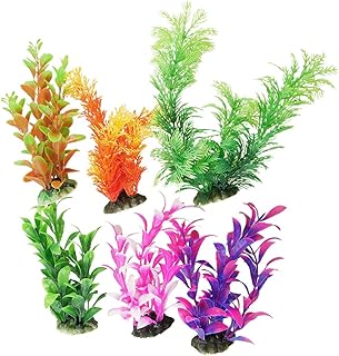 uxcell プラスチック植物 人工水草 水族館装飾 魚タンクデコレーション 6株 セラミックベース カラフル