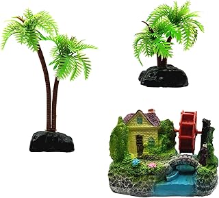 Supyouleg 水族館装飾 水槽オーナメント セット 小さな家 緑 プラスチック植物 ベッタ魚用 - 3個セット