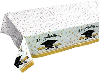 Iconikal 54 x 108インチ プラスチックテーブルクロス テーブルカバー 卒業おめでとう 2枚パック