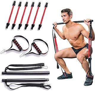 SELLING-SPORTS レジスタンス バンド 6pcs セット プレミアム トレーニング用具 調節可能なベルト 男女兼用 ホームトレーニングバンド ワークアウトとピラティスバーを組み合わせた 多機能 フィットネス アイテム