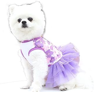 Hakona 犬 服 ワンピース 春夏 スカート ドッグウェア 洋服 可愛い お姫様風 贅沢な紫 3D桃の花 プリーツスカート レース 花柄 袖なし 人気の犬 服 おしゃれランキング ペット服 お散歩お出かけ服 記念撮影 コスチューム服 大中小型猫犬 M