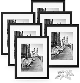 FEGO 11x14 写真フレーム6枚セット ウォールギャラリーフォトフレーム ディスプレイ写真 8x10 マット付き 11x14 マットなし 吊り金具付き ブラック