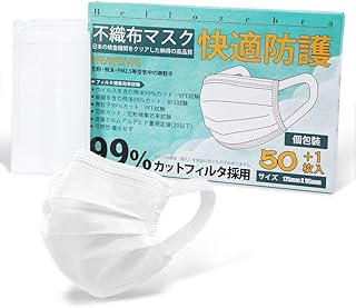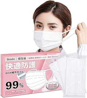不織布マスク 個包装 三層構造 立体プリーツ 使い捨て ふつうサイズ 男女兼用 50枚入り