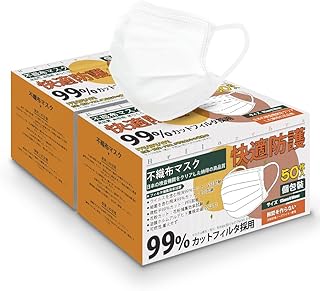 マスク 100枚 個包装 使い捨て 3層不織布 マスク 花粉飛沫対策 ホワイト セット 使い捨て 白 三層構造 大人用 耳痛くならない 平ゴム 普通サイズ PFE BFE VFE 99%以上(50枚x2箱)