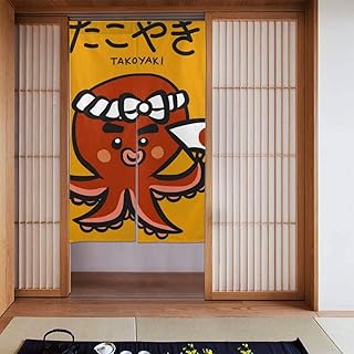のれん カーテン 和食たこ焼きタコ漫画ベクトルイラスト落書きスタイル 柔らかい おしゃれ 玄関 キッチン リビング 台所 飲食店 出入り口 開店祝い 新築祝い 仕切り 遮光 暖簾 カーテン 幅86丈143cm