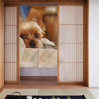 のれん カーテン ヨークシャーテリアベッドで寝ている おしゃれ 玄関 キッチン リビング 台所 飲食店 出入り口 開店祝い 新築祝い 仕切り 遮光 暖簾 カーテン 幅86丈143cm