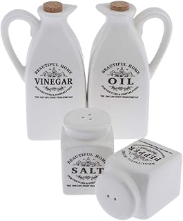 FLAMEER 4ピース/枚/個/枚セラミックオイルボトルオリーブオイルディスペンサースパイスミルズ入り酢ボトルソルトシェーカーペッパーシェーカーセット