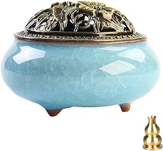 Zaoniy セラミック 家庭用 お香立て 耐火性 コットン 磁器 お香立て 磁器 チャコール 香炉 樹脂 粒状 パウダー コーン コイル インセンス用 (ブルー-2)