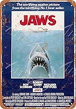 Aowotu Jaws ブリキ看板 ビンテージスタイル 映画ポスター シャークフィッシング ホラー スリラー 映画ポスター ヴィンテージ レトロ アルミサイン 8x12インチ バー シネマ キッチン ベッドルーム バー
