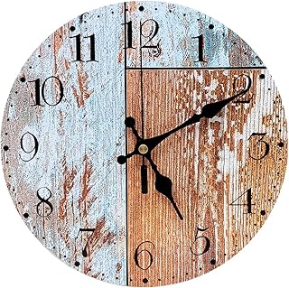 MEET ROSE ラウンドウォールクロック サイレントノーチッキング時計 10インチ 農家 素朴なウーダーンクロック キッチン リビングルーム バスルーム 寝室 オフィス 学校 (ブルー)