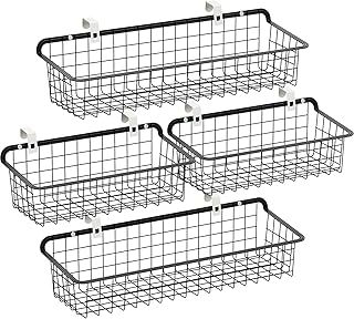 Cambond 壁掛けバスケット 金属製 壁掛けワイヤーバスケット 収納用 丈夫な吊りワイヤー 壁バスケット キッチン 自宅 オフィス バスルーム ガレージ 壁取り付け用フック付属 Lサイズ2個とSサイズ2個(ブラック)